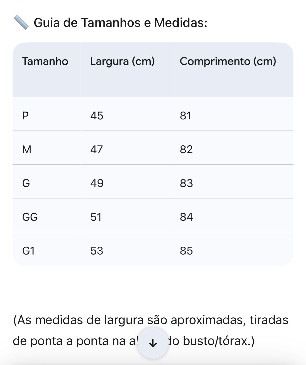 • Conforto Total: Modelagem T-Shirt solta e reta, ideal para o calor.